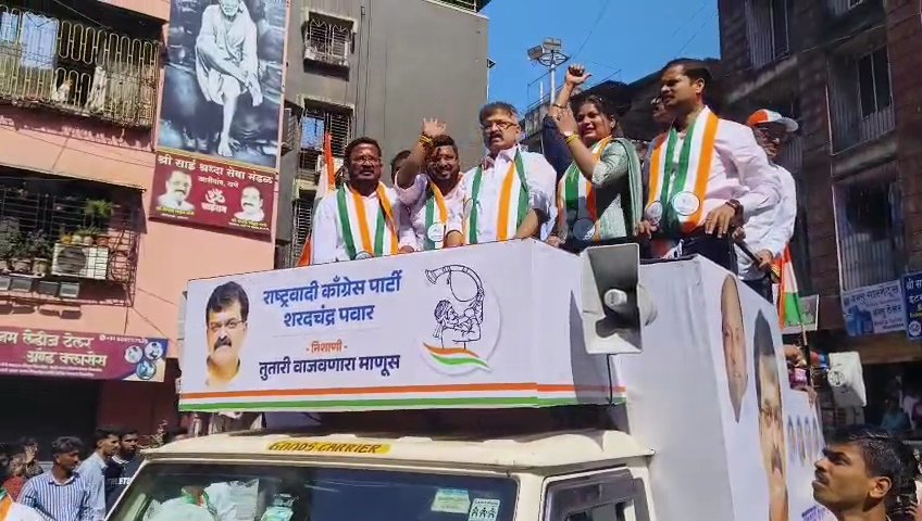 या प्रसंगी जिल्हाध्यक्ष मनोज प्रधान हे उपस्थित होते. राष्ट्रवादी काँग्रेस-शरदचंद्र पवार पक्षाचे झेंडे आणि तुतारी वाजवणाऱ्या माणसाचे कटआऊट कार्यकर्त्यांनी हातात घेतले होते. सबंध प्रभागात ही रॅली फिरविण्यात आली. विशेष म्हणजे, या रॅलीदरम्यान स्थानिक गावकऱ्यांनी अभिजीत पवार आणि पुजा शिंदे यांचे जागोजागी औक्षण केले. या प्रसंगी डाॅ.जितेंद्र आव्हाड यांनी, या रॅलीमध्ये फक्त कार्यकर्ते नाही तर सामान्य नागरिकही सहभागी झाल्याचे दिसत आहे. त्यामुळे या प्रभागात बदल होणारच आहे, असे सांगितले. तर, मनोज प्रधान यांनी , आमचे हे पॅनल प्रबळ असून येथे चारही जागांवर आम्हीच विजयी होऊ, असे सांगितले.