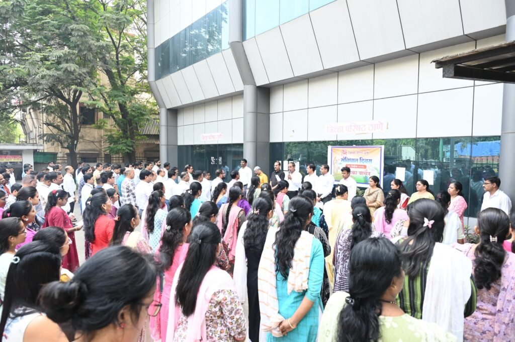 ठाणे, ता.२६ (प्रतिनिधी)— जिल्हा परिषद ठाणे येथे आज, दि. २६ नोव्हेंबर, २०२५ रोजी संविधान दिन उत्साहात साजरा करण्यात आला. जिल्हा परिषदेच्या पहिल्या मजल्यावरील सभागृहात डॉ. बाबासाहेब आंबेडकर यांच्या प्रतिमेस पुष्पहार अर्पण करून मुख्यालयाच्या आवारात सर्व अधिकारी आणि कर्मचारी यांनी उपस्थित राहून भारतीय संविधानाच्या उद्देशिकेचे सामूहिक वाचन करण्यात आले.उपमुख्य कार्यकारी अधिकारी (ग्रामपंचायत) प्रमोद काळे यांनी संविधान दिनाचे महत्त्व, भारतीय संविधानाची वैशिष्ट्ये आणि लोकशाही बळकट करण्यासाठी प्रत्येक नागरिकाची भूमिका याबाबत मार्गदर्शन केले. त्यांनी संविधानातील मूल्ये आचरणात आणणे आणि कार्यक्षेत्रात पारदर्शकता व जबाबदारी ठेवण्याचे आवाहन केले.